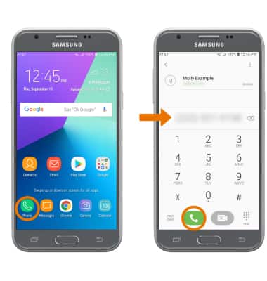 - MAKE A PHONE CALL: From the home screen, select the Phone app. Dial the desired number, then select the Call icon.