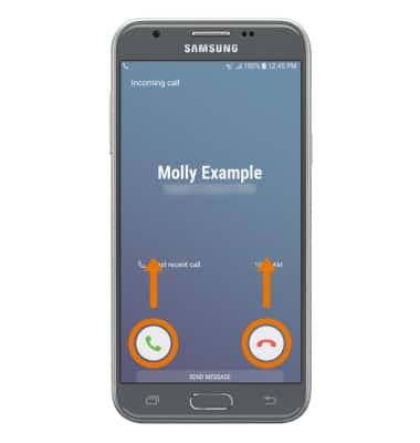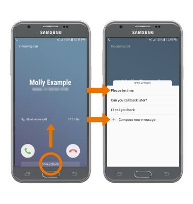 - REJECT A CALL WITH A TEXT MESSAGE: Select and drag SEND MESSAGE up. Select the desired message or select Compose new message to write your own.