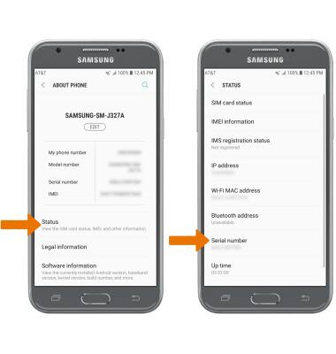 - VIEW SERIAL NUMBER: From the About phone screen, select Status. The device's Serial number will be displayed.