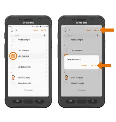 DELETE A CONTACT: From the Contacts screen, select and hold the desired contact. Select DELETE, then select DELETE again to confirm.