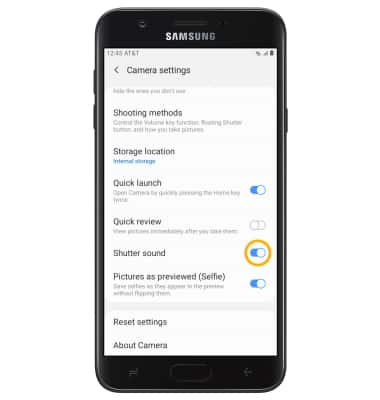 From the Camera settings screen, scroll to and select the Shutter sound switch.