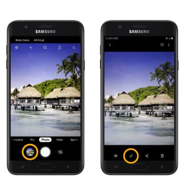 1. From the Camera app, select the Gallery icon. Swipe left to the desired photo, then select the Edit icon.