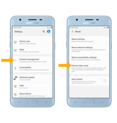 Settings icon > General management > select Reset > Factory data reset.