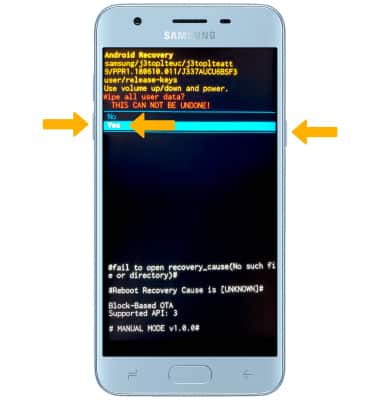 3. Press the Volume down button until Yes is highlighted, then press the Power/Lock button to begin the reset process.