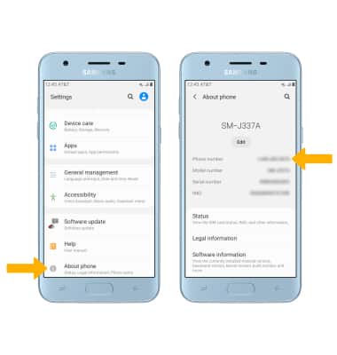 2. Scroll to and select About phone. The device's Phone number will be displayed.