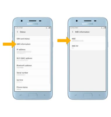 From the Status screen, select IMEI information. The IMEI number will be displayed.