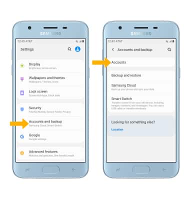 2. Scroll to and select Accounts and backup, then select Accounts.