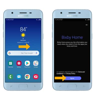 1. ACCESS HELLO BIXBY: From the home screen, swipe right. Review the Terms and Conditions and Privacy Policy, then select Agree.