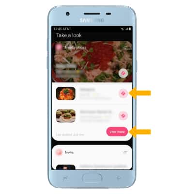 3. Scroll throughout the Bixby app to find Food recommendations, Upcoming scheduled appointments, Reminders, Emails, News, Sports, Weather, and more. Select the corresponding action to interact with an application featured in the Bixby app.