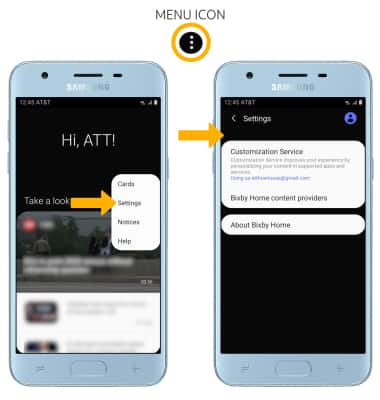 5. ACCESS BIXBY SETTINGS: Select the Menu icon at the top of Bixby Home, then select Settings. Edit settings as desired.