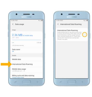 From the Data usage screen, select International Data Roaming then select the International Data Roaming circle.