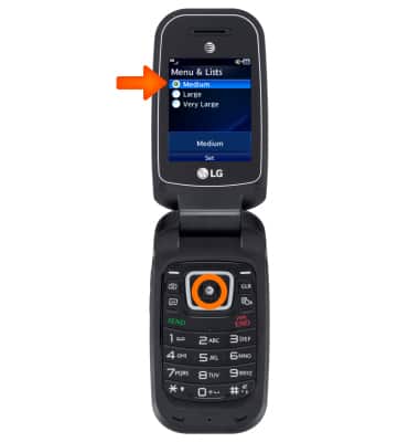 - To change your size of Menu & Lists, scroll to Menu & Lists and press OK.