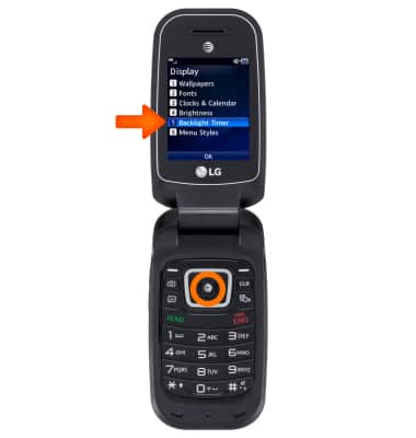 - To change Backlight Timer, under Display scroll to Backlight Timer and press OK.