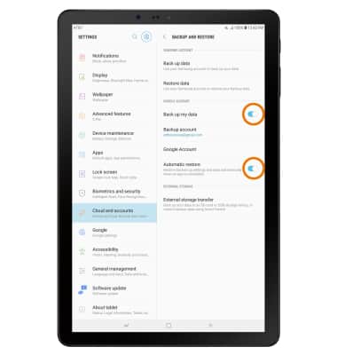 - Make sure that the Back up my data and Automatic restore switches are ON.