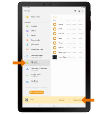 • Select SD card, then navigate to the desired folder and select Copy here.