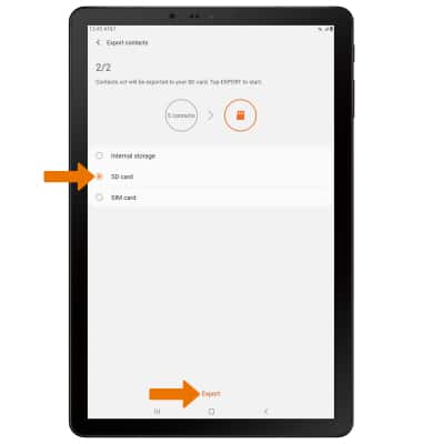 • Select SD card, then select Export. Your contacts are now backed up to your SD card.