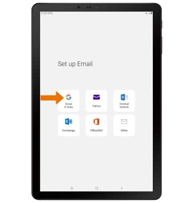 Note: For this demonstration, Gmail was selected. If you have an email account already set up and would like to add another, from the home screen, select the Email app > Menu icon > Settings icon > Add account > follow the prompts.
