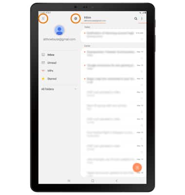 - ADD ADDITIONAL EMAIL ACCOUNTS: Select the Menu icon, then select the Settings icon.