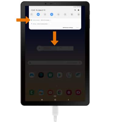 - To place the device into the correct USB mode, swipe down from the Notification bar then select the Android System drop down menu > USB for file transfer.