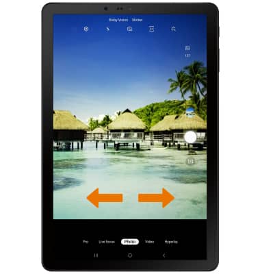 Note: Pro allows you to manually adjust settings such as ISO, shutter speed and exposure levels. Panorama allows you to create wider photos by stitching together multiple photos. Hyperlapse allows you to take a time lapse video at various frame rates. The frame rate will automatically change based on the scene and the movement of your tablet.