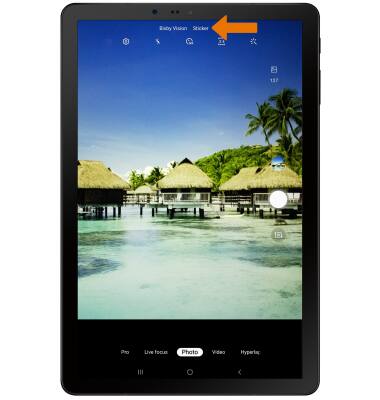 - ACCESS CAMERA EFFECTS: From the Camera app, select Sticker to access stickers then select the desired option.