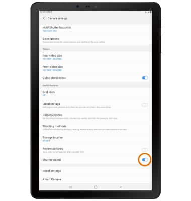 - TURN ON/OFF SHUTTER SOUND: From the Camera settings screen, scroll to and select the Shutter sound switch.