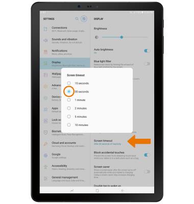 - ADJUST SCREEN TIMEOUT: From the Display screen, select Screen timeout then select the desired timeout option.