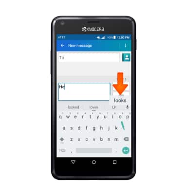 - To use Auto complete suggestions, begin typing the Desired word and tap the Desired suggestion.