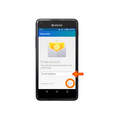 Note: To manually configure email settings (such as server settings and security type), tap MANUAL SETUP and enter the required information. You will need your account's server settings. If you don't know this information, please contact your email provider for assistance.