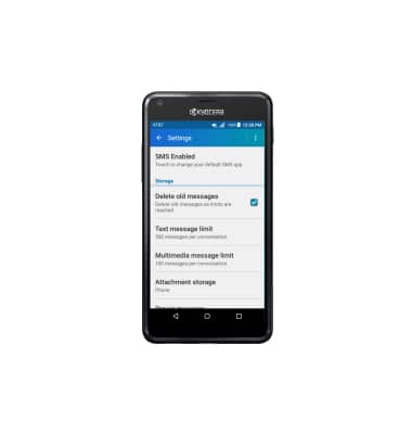 - To access the text & picture message settings screen, from the home screen, tap the Messaging icon.