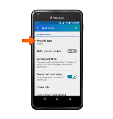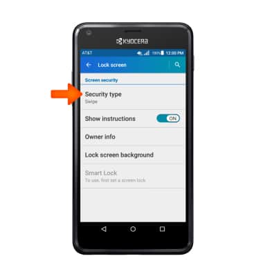 - To change the security lock type, from the Lock screen menu, tap Security type.