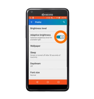 - Tap Adaptive brightness ON, to turn on Auto-brightness.