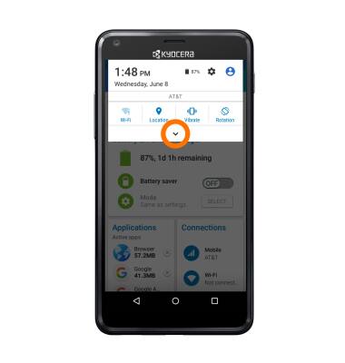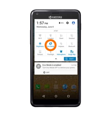 - To turn on Eco mode to conserve battery, swipe down from the top of the home screen, then tap the down arrow icon and tap Eco mode icon to turn on or off.
