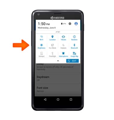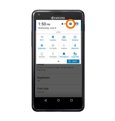 - To extend battery life, set the Brightness to low or automatic. Swipe down from the top of the screen, then tap the Settings icon.