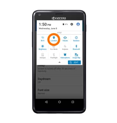 - Swipe down from the top of the screen, then tap the Location icon to turn off Location services.