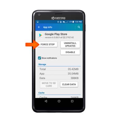 - To turn off auto syncing, tap FORCE STOP.