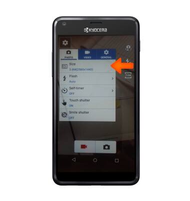 - To change picture size, from the settings menu, tap Size and tap the Desired option.