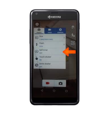 - To set the timer, from the Settings menu, tap Self-timer and select the Desired option.