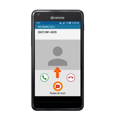 - To reject an incoming call with a text message, swipe the Reply with text icon up.