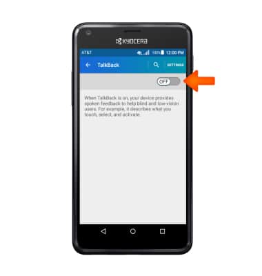 - Tap TalkBack to turn on.