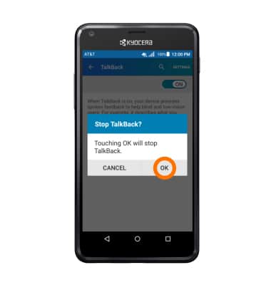 - Tap the TalkBack toggle to turn off. Then tap OK.