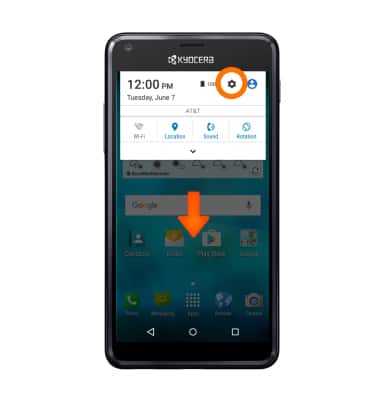 2. To add a Google account, swipe down from the top of the screen to access the Quick settings menu, then tap the Settings icon.
