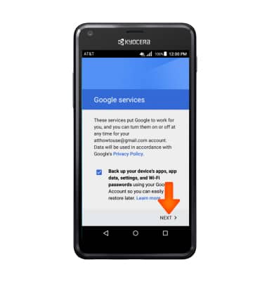 6. Enter your Google account Information, and then tap NEXT.