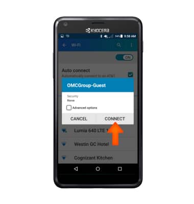 - If connecting to a secure network, enter the Wi-Fi network password, and tap CONNECT.