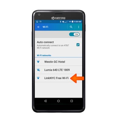 Note: Data transmitted over a Wi-Fi network does not count toward your AT&T data plan, and will not be billed. To manage whether your device automatically switches from a poor or unstable Wi-Fi network to the AT&T network to maintain a consistent data connection tap Auto connect. When using the AT&T network, data rates apply.