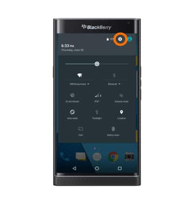 - To sign in with your BlackBerry ID, swipe down from the top of the screen with two fingers and tap the Settings icon.