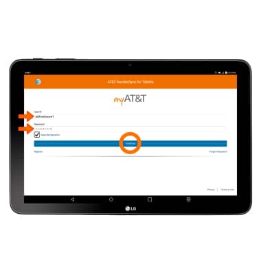 - On the login screen, enter your myAT&T User ID and Password for the smartphone mobile number you would like to sync with your tablet, then tap Continue. You will receive a confirmation text on your smartphone.