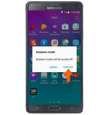 - To turn Airplane mode off, press and hold the Power button.