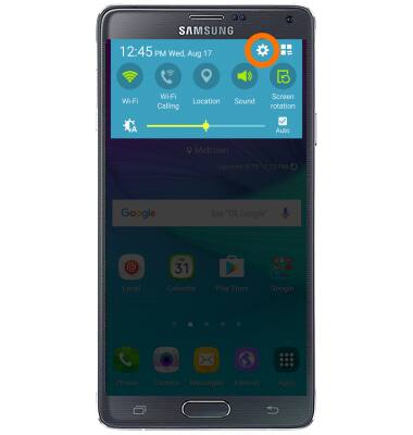 - To clear your app cache, swipe down from the top of the screen, and tap the Settings icon.