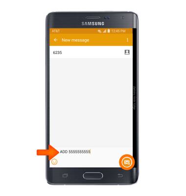 - Enter ADD 5555555555 (your device phone number) in the message field, then tap the Send icon.